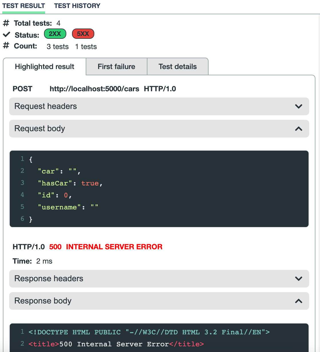127.0.0.1 - - [06/Dec/2020 13:38:52] "POST /cars HTTP/1.1" 500 -